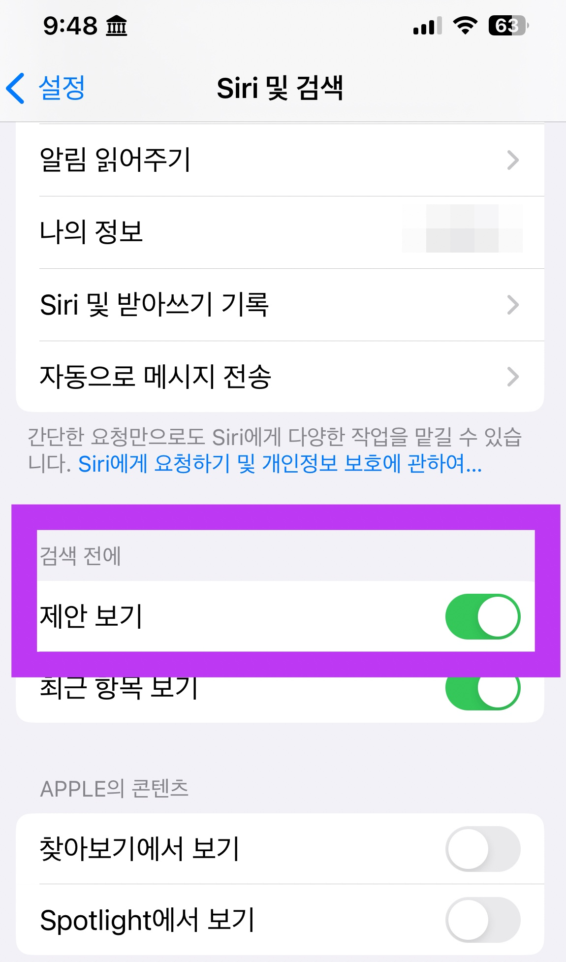 이까지는 일반적으로 사용하는 방법이다. 하지만 시리 제안을 통해 확장하면 더 많은 정보가 가능하다.